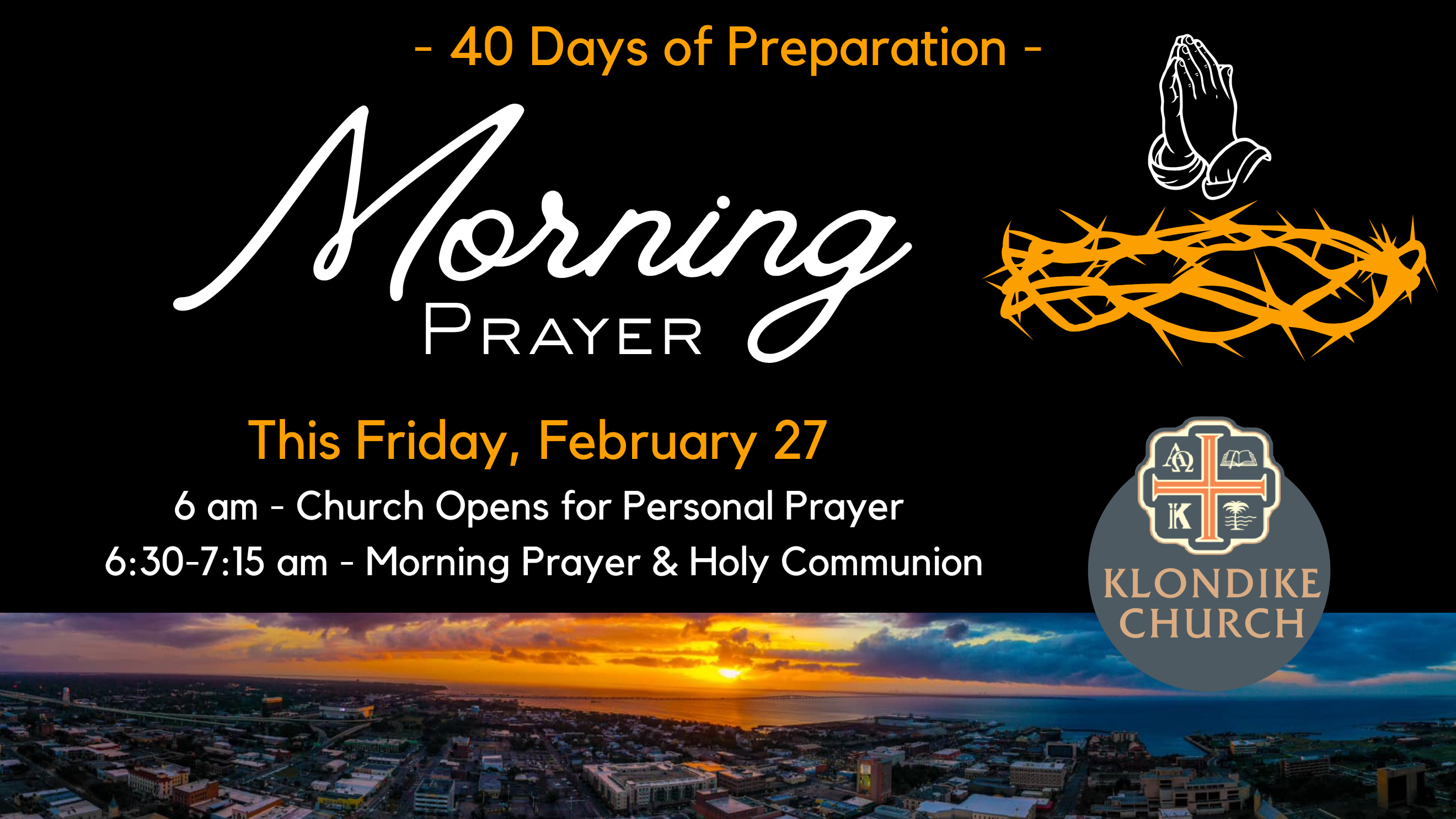 Special Morning Prayer & Lord’s Table Times: Friday, February 27, 6:30 am – 7:15 am Friday, March 13, 6:30 am – 7:15 am Friday, March 27, 6:30 am – 7:15 am